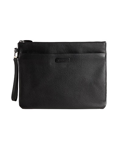 computer case, pebbled-leather, solid color, brand logo, zipper fastening, external pockets, medium size, contains non-textile parts of animal origin