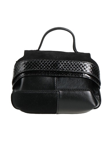 handbag, leather, calf hair, solid color, no appliqués, snap fastenings, bag handle, detachable shoulder strap, small size, contains non-textile parts of animal origin