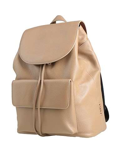 backpack with flap, pebbled-leather, mesh fabric, solid color, brand logo, magnetic fastening, fully lined, large size, contains non-textile parts of animal origin