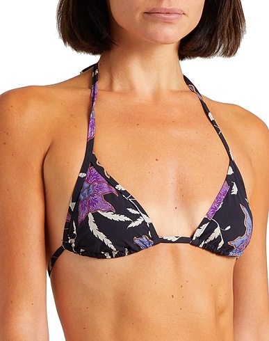 triangle bikini top, synthetic jersey, floral-print, no appliqués, unlined, stretch