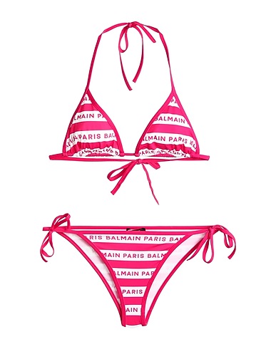 synthetic jersey, brand logo, stripes, fully lined, self-tie closure, no underwire bra