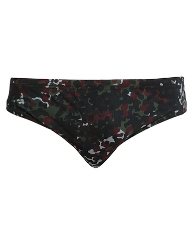 swim briefs, synthetic jersey, stretchy fabric, camouflage-print, brand logo, tie fastening, fully lined