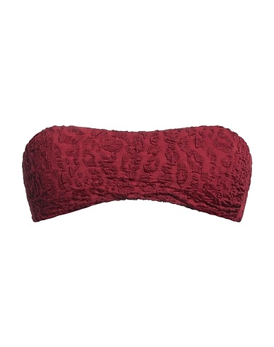 bandeau bikini top, synthetic jersey, solid color, no appliqués, stretch, hand wash or dry clean, do not bleach, do not tumble dry