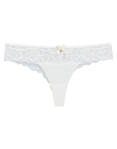 thong, jersey, lace, solid color, brand logo, bow-detailed, stretch