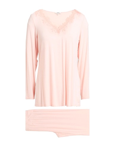 jersey, lace, no appliqués, solid color, crew neck, long sleeves, no pockets, stretch, 2-piece set, pyjama set