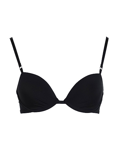 synthetic jersey, brand logo, solid color, hook fastenings, molded bra, underwire bra, stretch, hand wash, do not tumble dry, do not iron, push-up bra