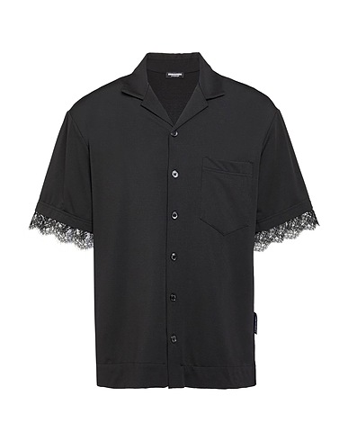 pyjama top, jersey, perforated, solid color, lace trims, brand logo, camp collar, short sleeves, button fastenings, one chest pocket, stretch, machine wash, do not iron, do not tumble dry