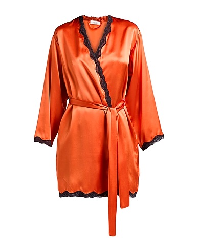 robe, satin, two-tone, lace trims, deep neckline, 3/4 length sleeves, tie fastening, do not bleach, hand wash, do not tumble dry
