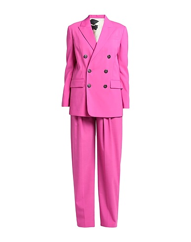 plain weave, no appliqués, solid color, lapel collar, double-breasted, long sleeves, fully lined, button closing, hook-and-eye closure, multipockets, stretch, pants model