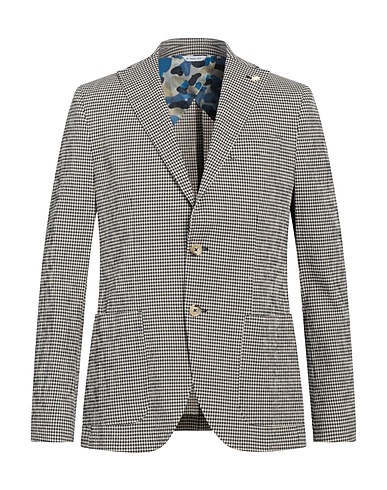 plain weave, no appliqués, checked, lapel collar, single-breasted , long sleeves, buttoned cuffs, partially lined interior, button closing, multipockets, dual back vents, single-breasted jacket