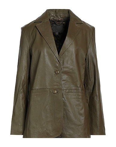leather, no appliqués, solid color, lapel collar, single-breasted , long sleeves, fully lined, button closing, multipockets, contains non-textile parts of animal origin, single-breasted jacket