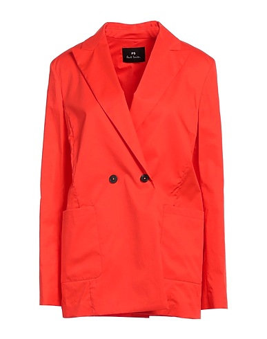 double-breasted blazer, woven, solid color, no appliqués, lapel collar, long sleeves, partially lined, button fastenings, multipockets, rear slit, stretch, dry clean, do not bleach, do not tumble dry