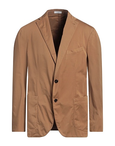 single-breasted blazer, woven, solid color, brand logo, lapel collar, long sleeves, unlined, button fastenings, multipockets, stretch, dry clean, do not bleach, do not tumble dry