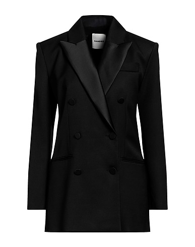 twill, satin, no appliqués, solid color, lapel collar, double-breasted, long sleeves, fully lined, button fastenings, multipockets, double-breasted jacket
