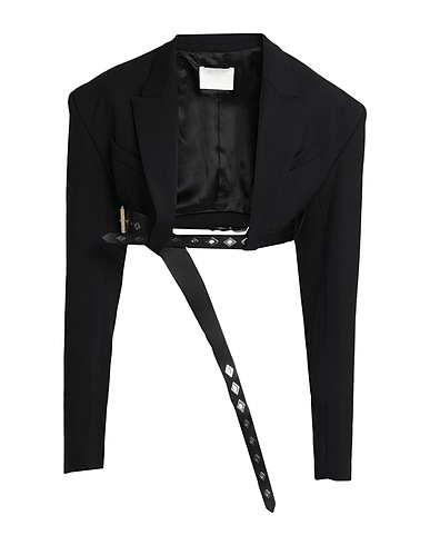 bolero jacket, crepe, stretchy fabric, leather trims, solid color, lapel collar, long sleeves, fully lined, without pockets, contains non-textile parts of animal origin, do not wash, do not bleach, do not tumble dry
