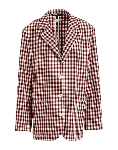 seersucker, embroidered logo, checked, lapel collar, long sleeves, partially lined, button fastenings, multipockets, stretch, machine wash or dry clean, do not tumble dry, single-breasted blazer
