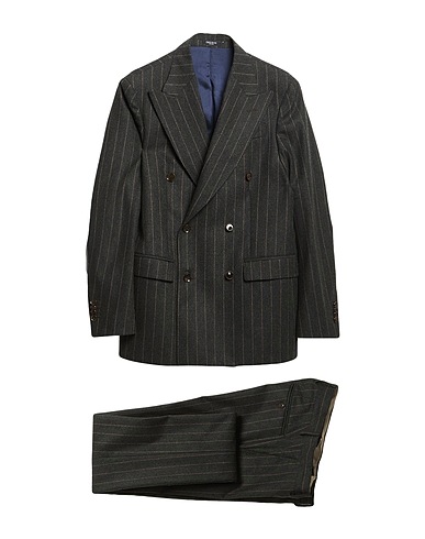flannel, no appliqués, pinstriped, lapel collar, long sleeves, fully lined, button fastenings, multipockets, dry clean, do not bleach, do not tumble dry, double-breasted suit