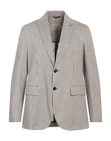 single-breasted blazer, piqué, no appliqués, striped, lapel collar, long sleeves, partially lined, button fastenings, multipockets, dual back vents, stretch, machine wash, do not bleach, do not tumble dry