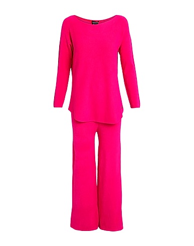 pants co-ord, knitted, lightweight knit, solid color, brand logo, crewneck, long sleeves, unlined, without pockets, hand wash or dry clean, do not bleach, do not tumble dry