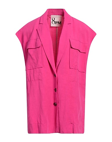single-breasted blazer, woven, solid color, no appliqués, single-breasted , sleeveless, unlined, button fastenings, flap pockets, dry clean, do not bleach, do not tumble dry, do not iron