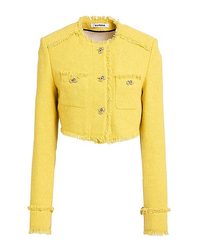 jacket, tweed, solid color, fringes, crewneck, long sleeves, fully lined, button fastenings, multipockets, dry clean, do not bleach, do not tumble dry