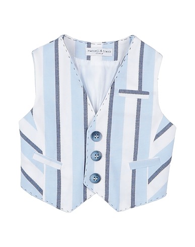 woven, striped, no appliqués, single-breasted , sleeveless, fully lined, button fastenings, multipockets, dry clean, do not bleach, do not tumble dry
