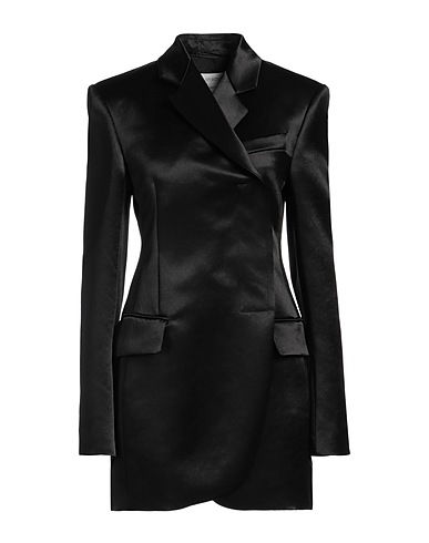 single-breasted blazer, satin, solid color, no appliqués, lapel collar, long sleeves, fully lined, velcro fastening, multipockets, rear slit, contains non-textile parts of animal origin, dry clean, do not bleach, do not tumble dry