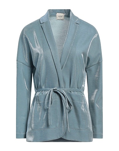 single-breasted blazer, knitted, metallic, lightweight knit, solid color, no appliqués, lapel collar, long sleeves, unlined, tie fastening, two chest pockets, hand wash or dry clean, do not bleach, do not tumble dry