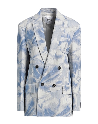 single-breasted blazer, denim, two-tone, no appliqués, lapel collar, long sleeves, buttoned cuffs, fully lined, 1 button, flap pockets, drawstring waist, stretch, dry clean, do not bleach, do not tumble dry