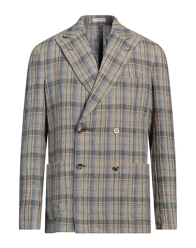 double-breasted blazer, linen, tartan pattern, no appliqués, lapel collar, long sleeves, partially lined, button fastenings, multipockets, dual back vents, dry clean, do not bleach, do not tumble dry