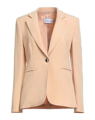 single-breasted blazer, crepe, stretchy fabric, solid color, no appliqués, lapel collar, long sleeves, fully lined, button fastenings, without pockets, machine wash, do not bleach, do not tumble dry