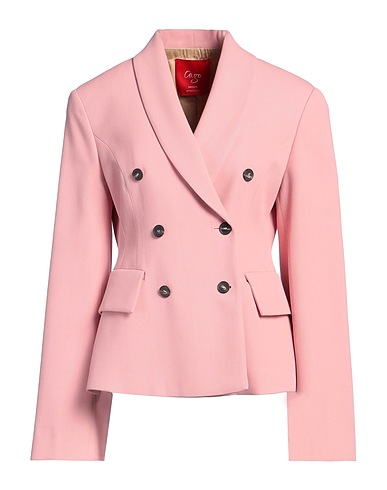 double-breasted blazer, gabardine, solid color, no appliqués, lapel collar, long sleeves, shoulder pads, fully lined, button fastenings, pockets, dry clean, do not bleach, do not tumble dry
