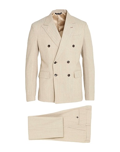 double-breasted suit, bouclé, herringbone, no appliqués, lapel collar, long sleeves, fully lined, button fastenings, one chest pocket, flap pockets, dry clean, do not bleach, do not tumble dry