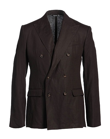 double-breasted blazer, linen, solid color, no appliqués, lapel collar, long sleeves, partially lined, button fastenings, flap pockets, rear slit, dry clean, do not bleach, do not tumble dry