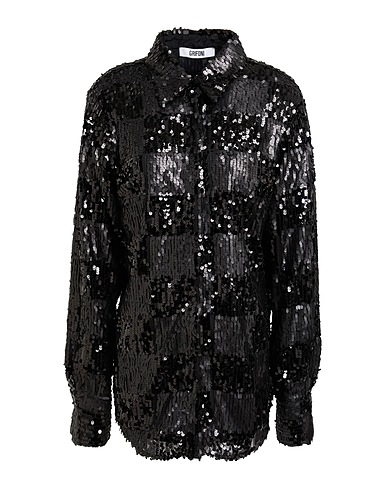 long shirt, tulle, solid color with appliqués, sequins, lapel collar, long sleeves, snap-fastening cuffs, fully lined, snap fastenings, machine wash or dry clean, do not bleach, do not tumble dry
