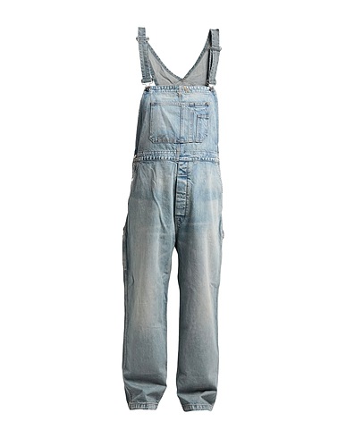 denim, faded, brand logo, solid colour with appliqués, medium wash, overalls top, sleeveless, unlined, multipockets